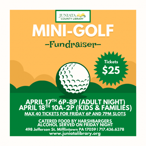 We will be holding a mini-golf fundraiser over two days, Friday, April 17th (6 p.m.- 8 p.m.) and Saturday, April 18th (10 a.m.- 2 p.m.). This is being organized by a group of individuals from the board of trustees, Friends, and the community.