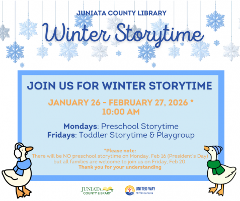 *As always, parents or guardians are encouraged to stay and participate in our story time programs. Siblings, younger or older, are also welcome to attend if they do not distract from the program.
